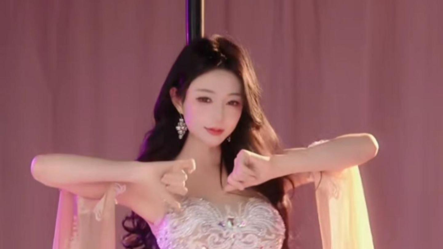 Streamer wanita AfreecaTV Korea Selatan Han Xue menari dengan penuh semangat
