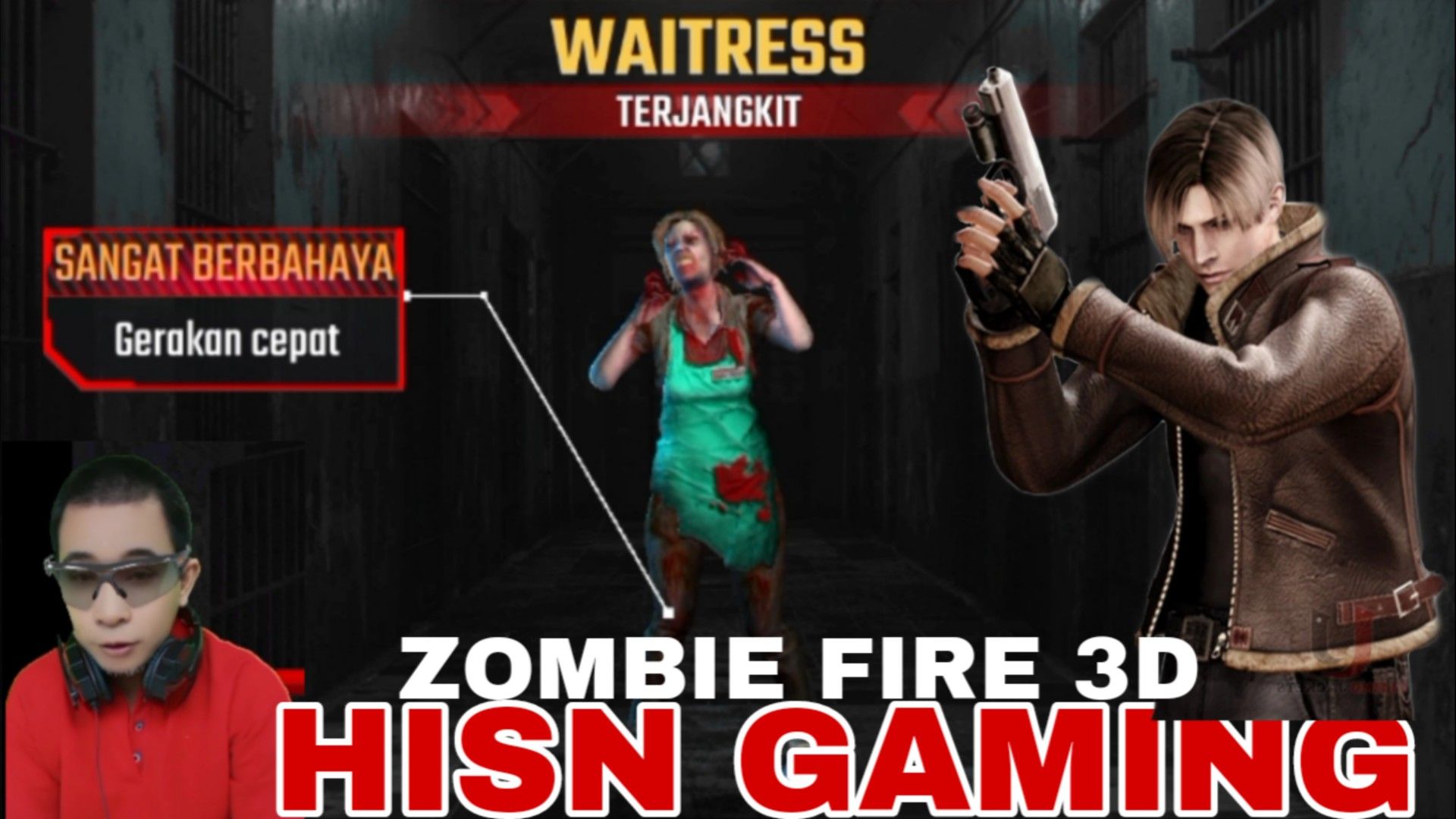 game zombie fire 3D, zombie senior waitress terjangkit semakin cepat bergerak