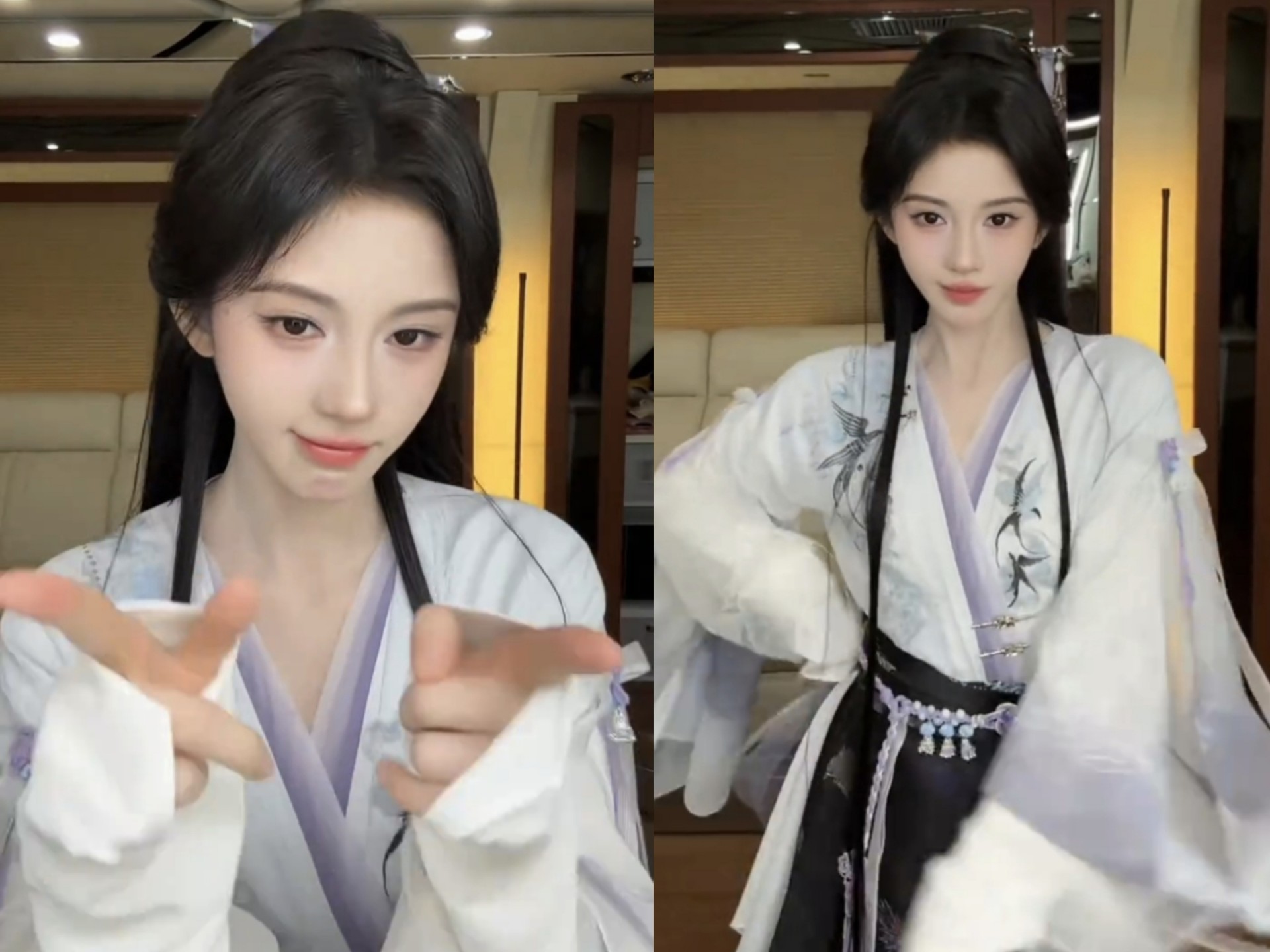 Streamer wanita AfreecaTV Korea Selatan Han Xue menari dengan penuh semangat