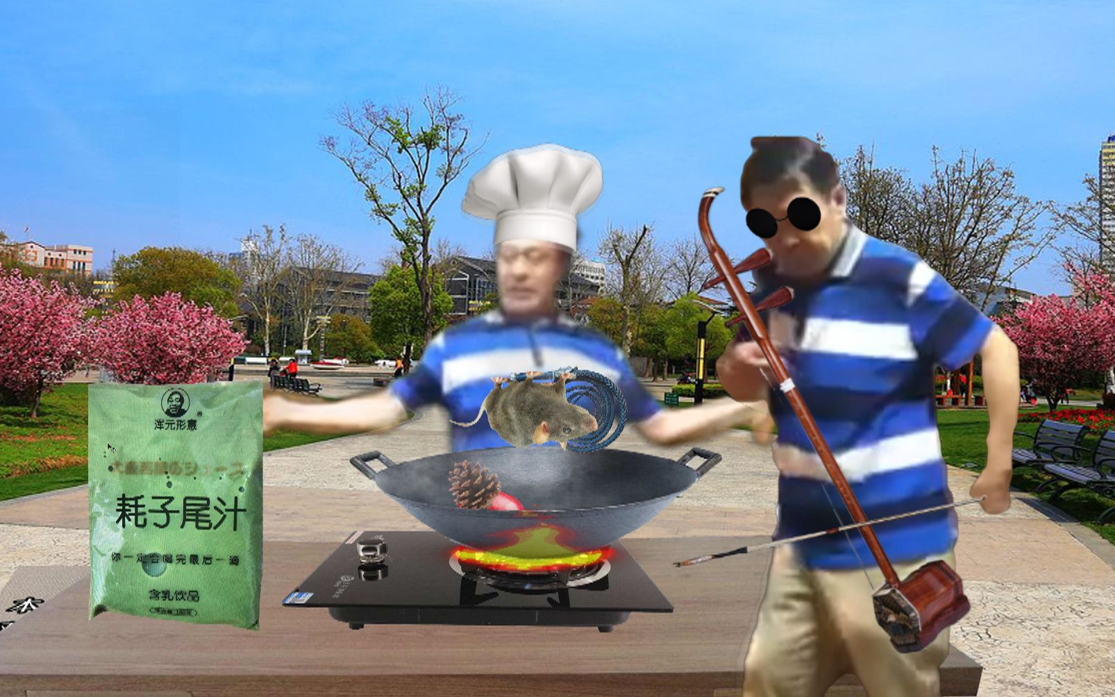 Ayam gorengnya renyah di luar dan lembut di dalam, sosis bakarnya harum semerbak, sekali gigit, meme