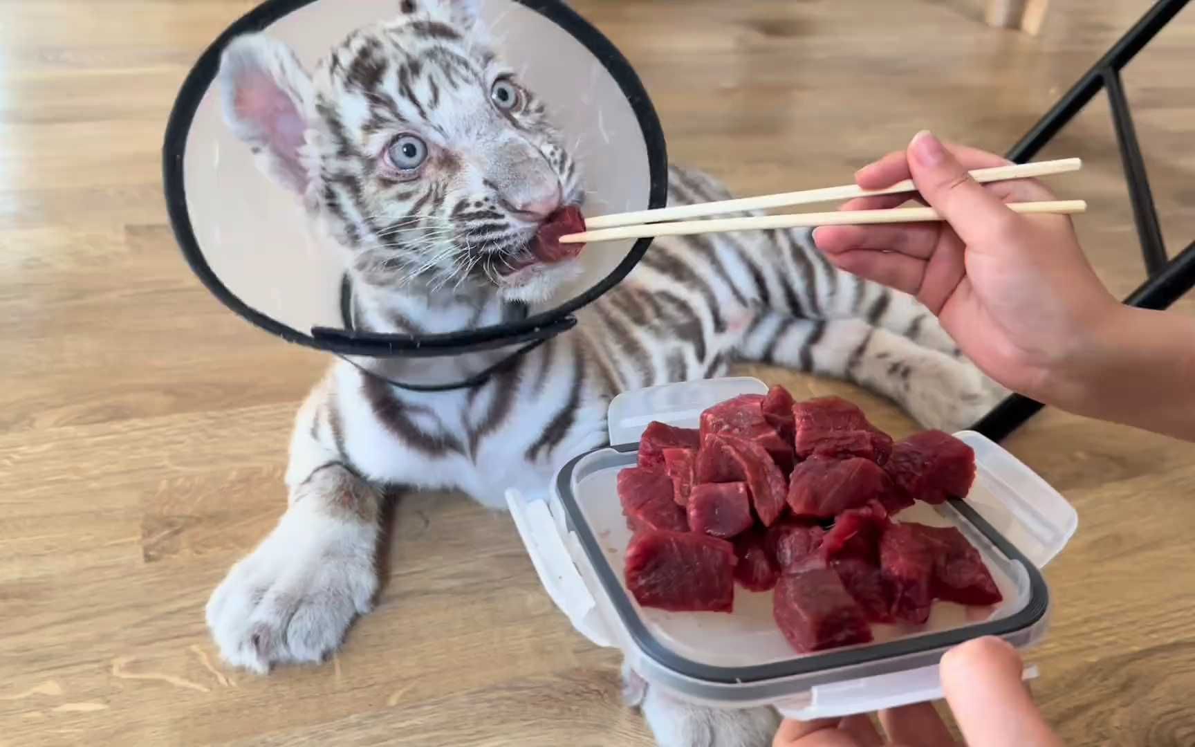 Anak harimau putih berkepala dua bertemu wisatawan untuk pertama kalinya