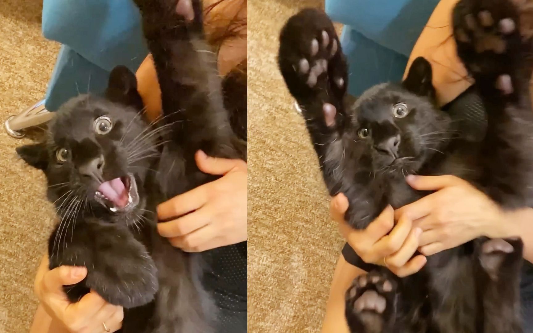 Apa yang terjadi ketika macan kumbang hitam peliharaan melihat orang asing?