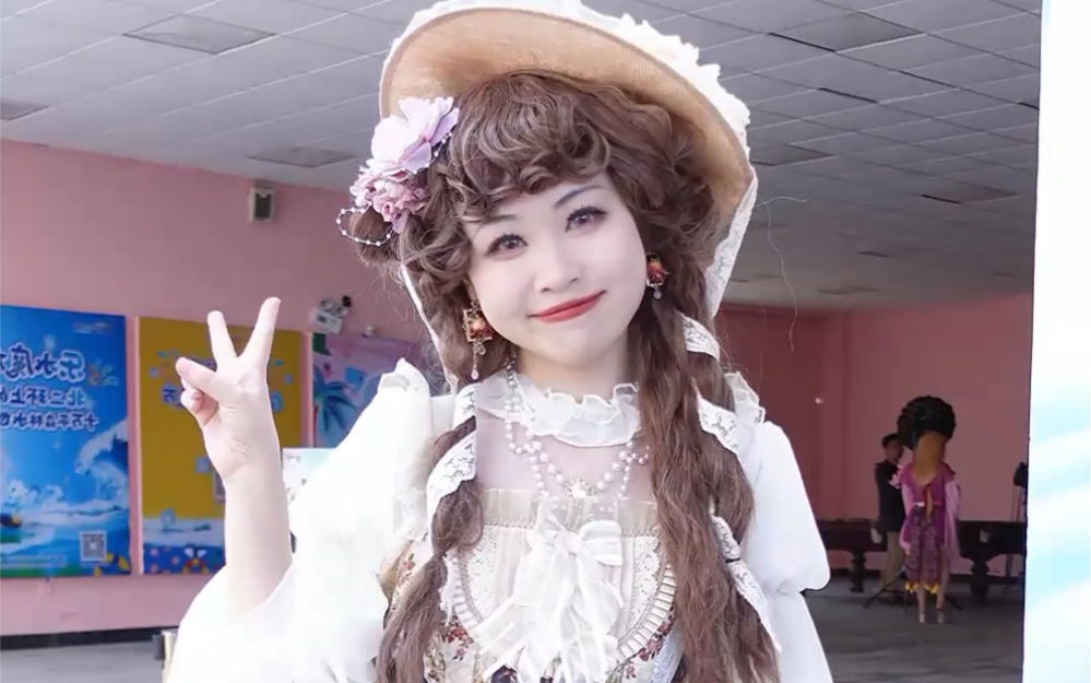 Mencari dinding LED sepanjang satu sisi untuk memotret video utama gaya Lolita dengan wig palsu yang
