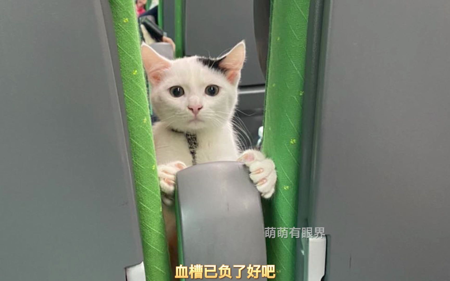 Ketika seorang penumpang mendaftarkan seekor kucing, wanita di samping menatap lurus ke arahnya.