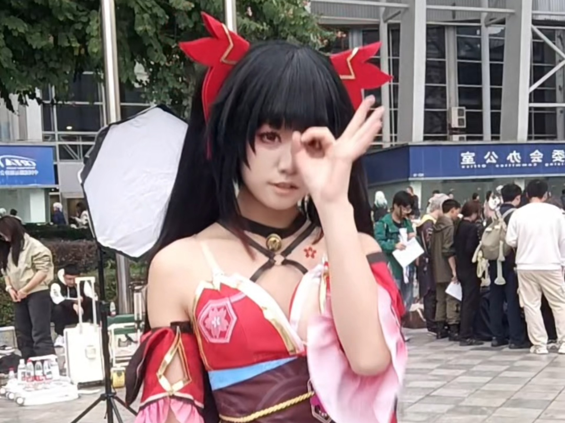 Seorang gadis menyanyikan lagu "ćć©" milik Ado