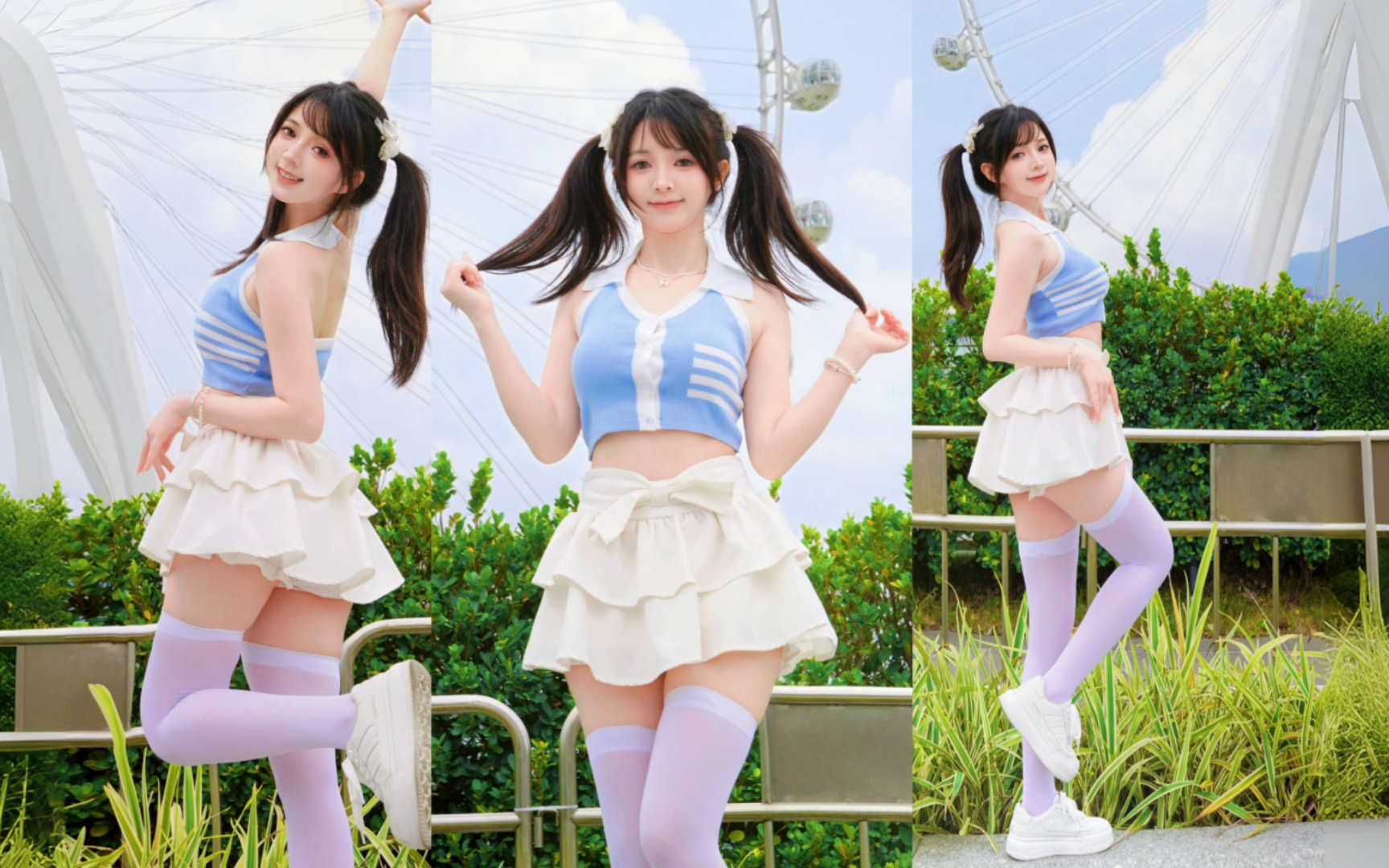 Mengenakan kemeja putih dan hot pants, menari mengikuti Api sangatlah murni~