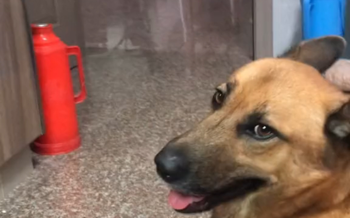 Ketika gadis kecil itu pulang dari sekolah, dia disambut oleh tiga ekor anjing penggembala Tiongkok,