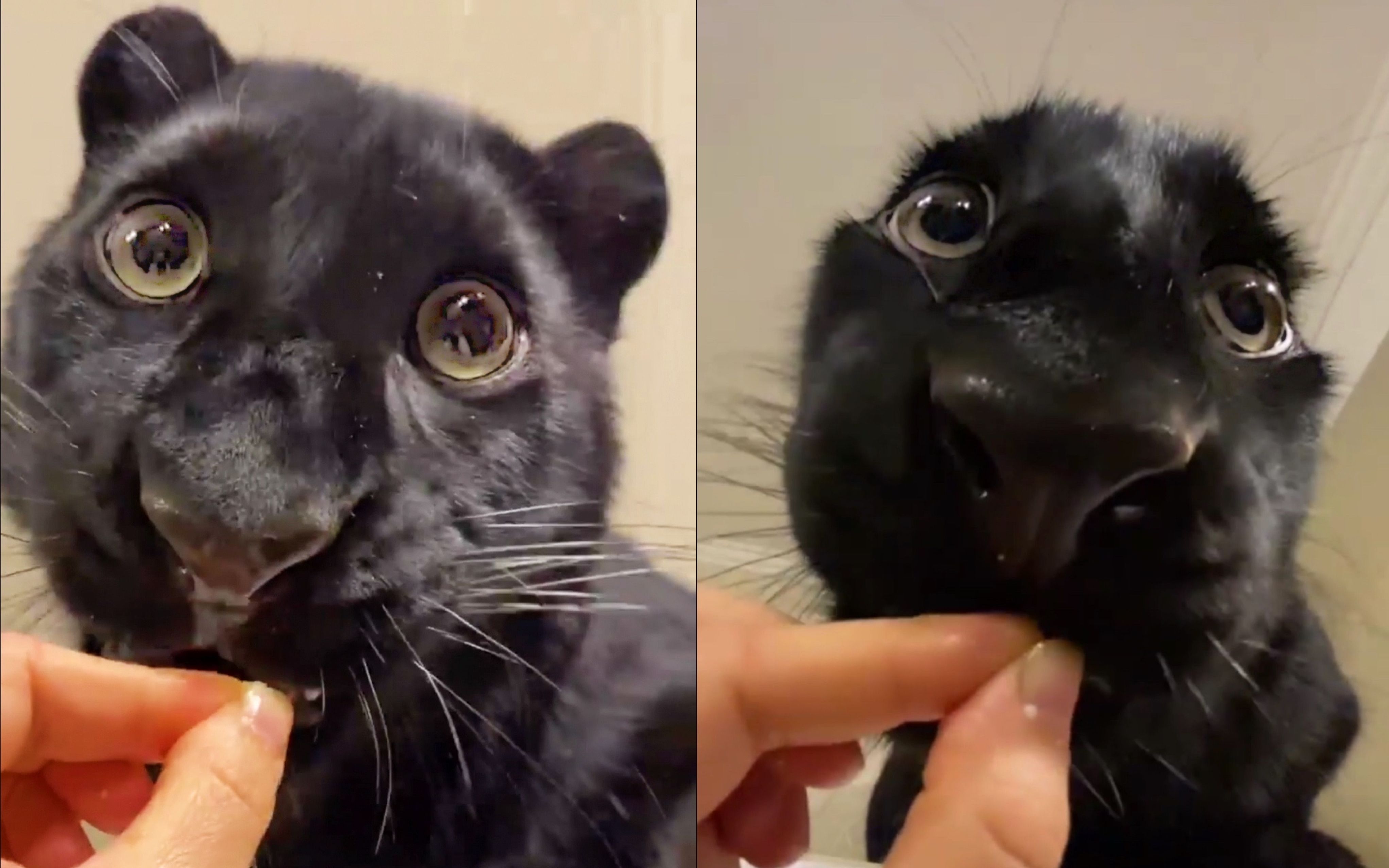 Apa yang terjadi ketika macan kumbang hitam peliharaan melihat orang asing?