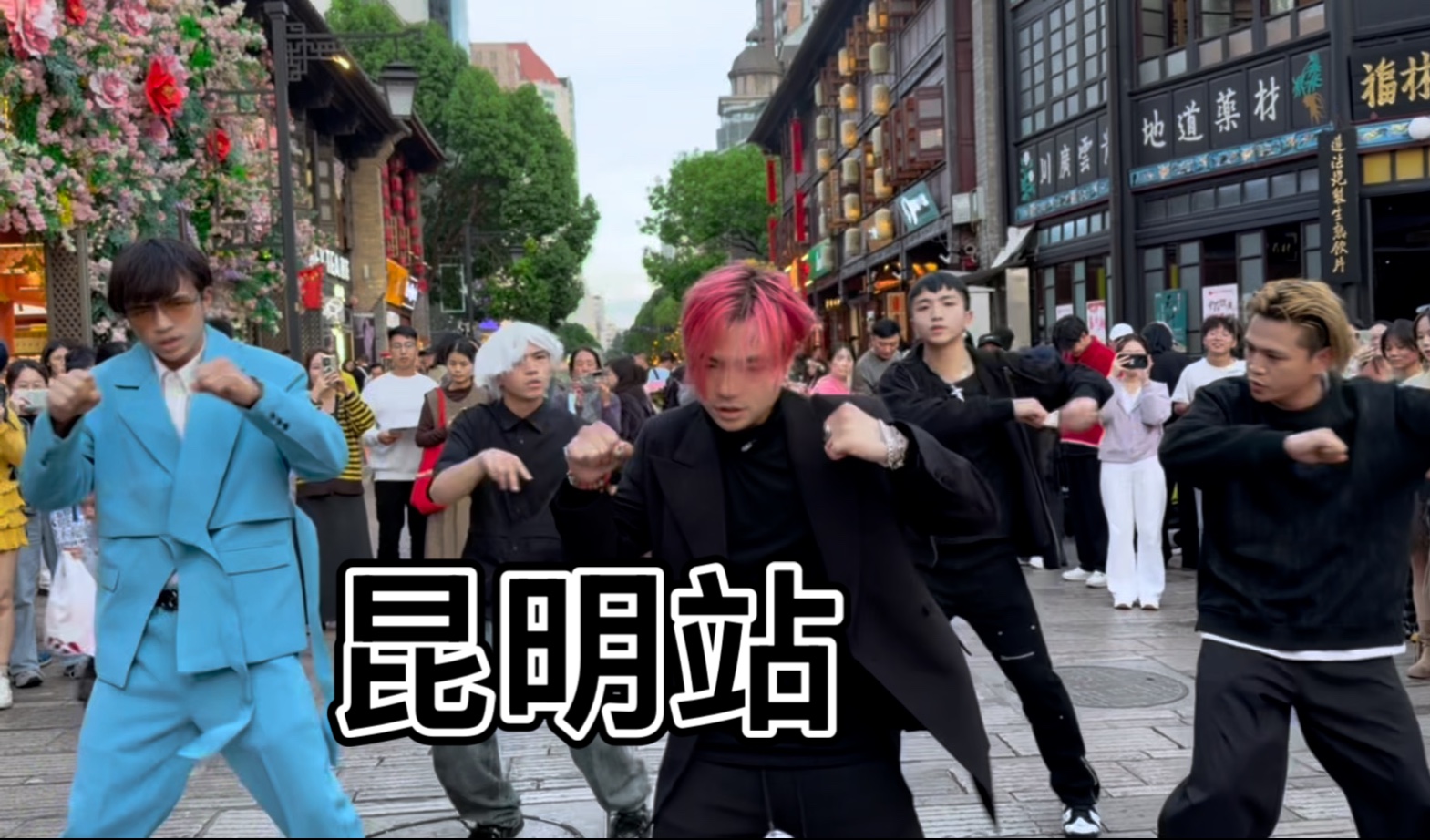 Versi kreatif kedua Yunnan bigbang menyanyi dan menari lagu "bang bang bang" di jalanan