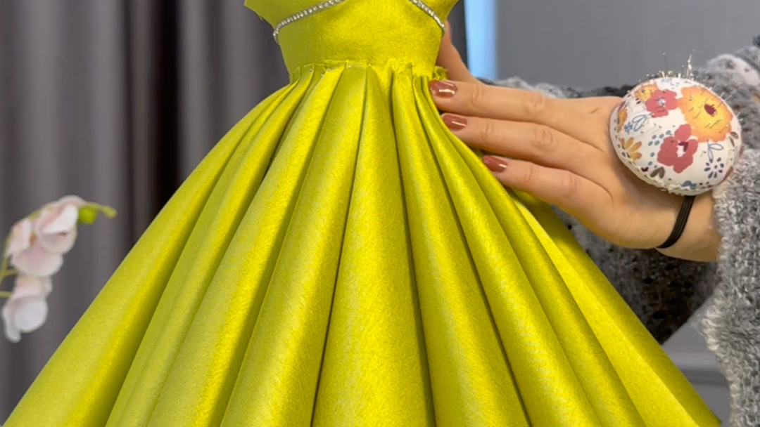 (Penyembuhan dan dekompresi) Pengukiran ulang bordir tangan dari gaun dansa yang berkilau dan hangat