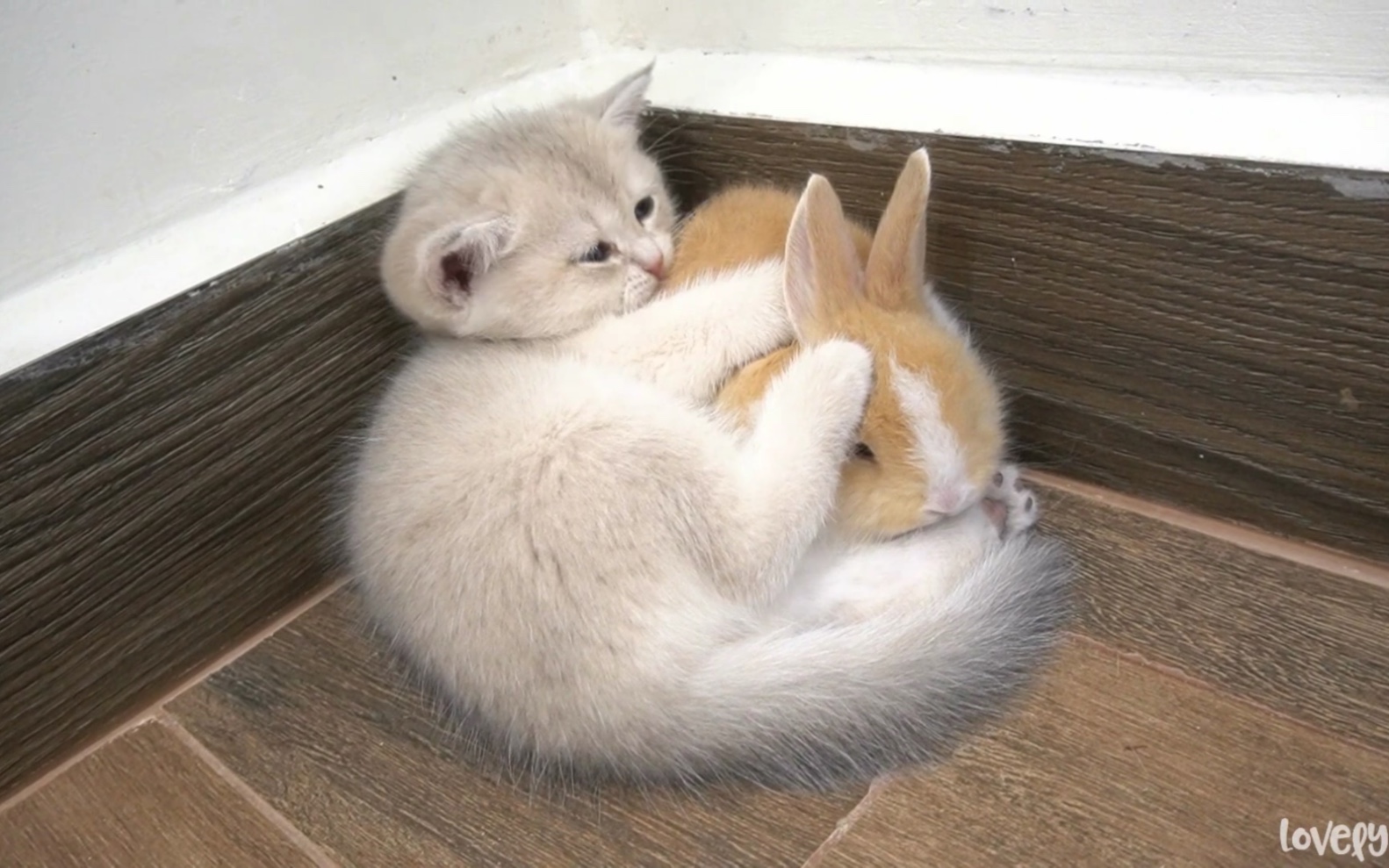 Kucing kecil memperlakukan anak kucing sebagai ibunya