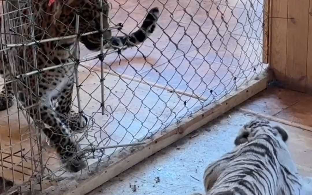 Little White Tiger menggunakan pasir kucing untuk pertama kalinya