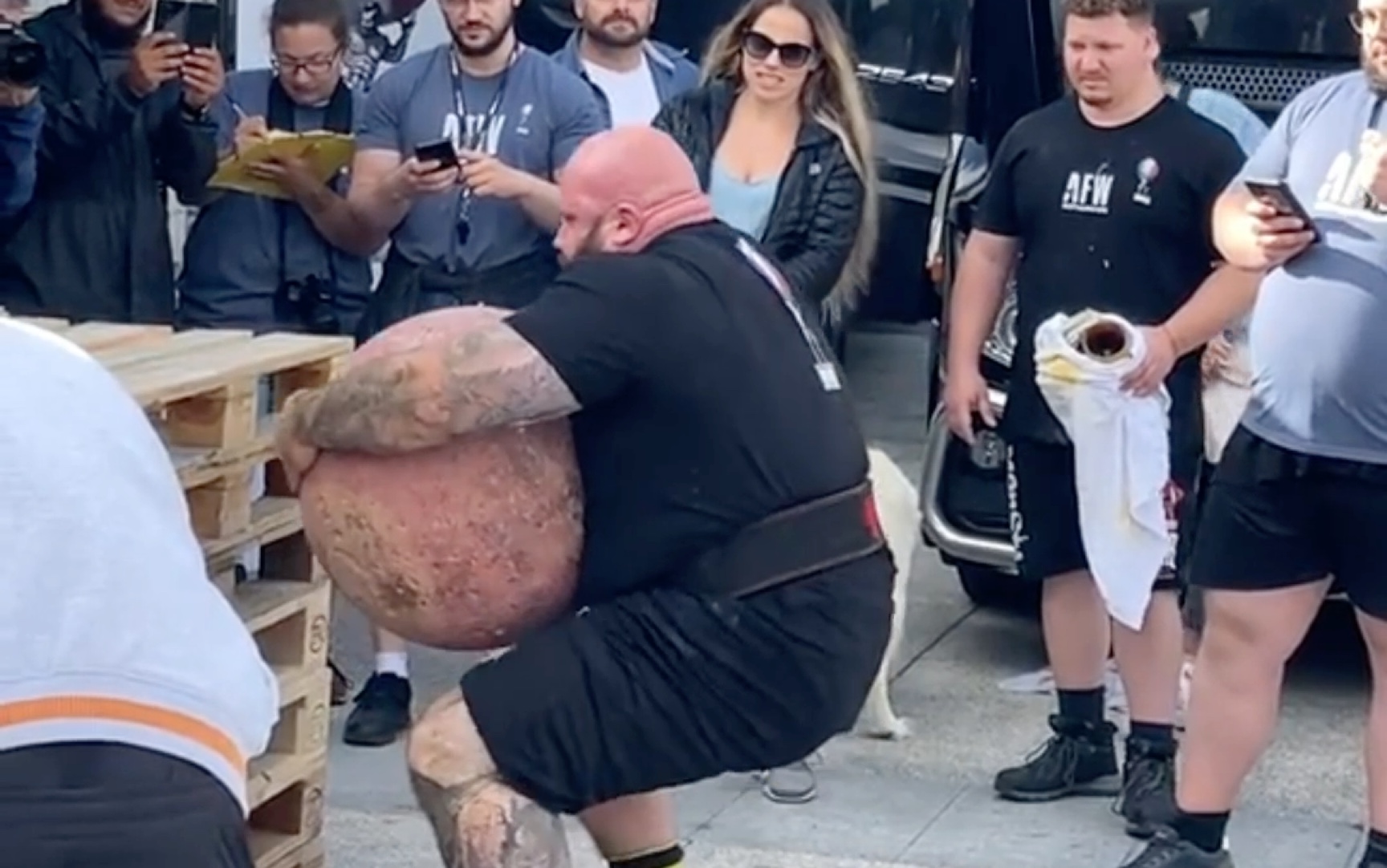 (Olahraga)Denis mengangkat batu dengan kekuatan tangan yang luar biasa