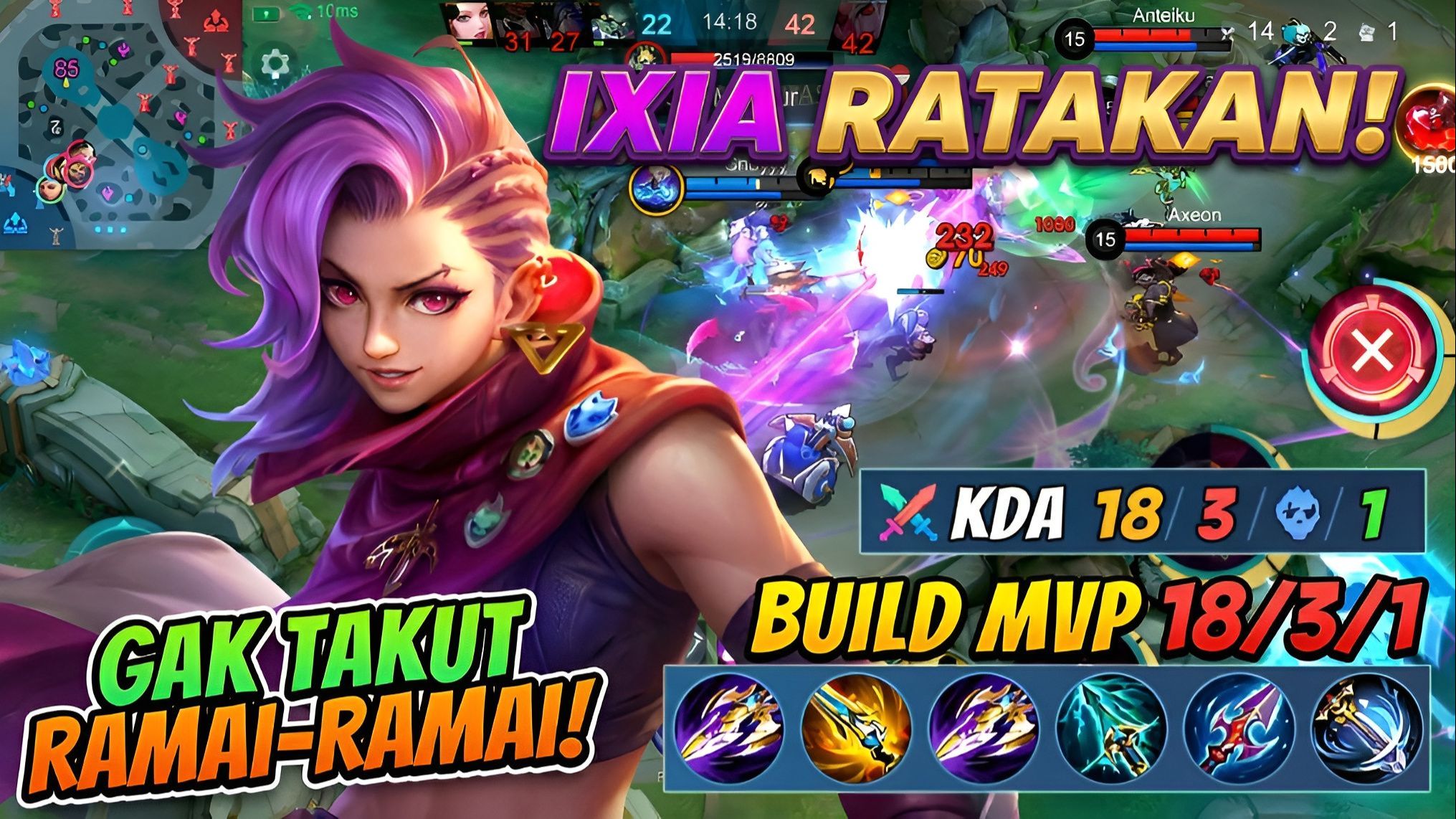 Ixia OP Build 2025! 18 Kills & Instant Kill, Stat 18/6/7 Auto MVP di Rank Mythic!