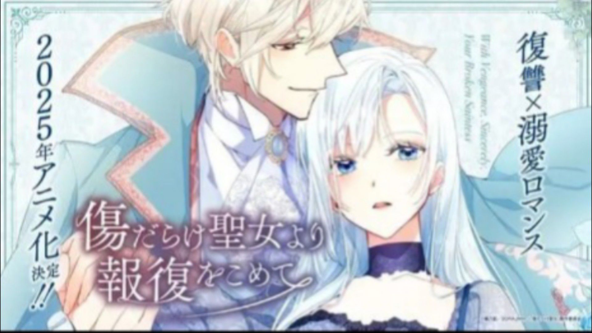 Kizu Darake Seijo Yori Houfuku wo Komete (傷だらけ聖女より報復を込めて) Judul Inggris: With Vengeance, Sincerely, Your Broken Saintess Genre: Fantasi, Romance Sinopsis: Lua adalah seorang calon santa yang memiliki kekuatan penyembuhan. Namun, kekuatannya ini memiliki kelemahan fatal: setiap kali dia menyembuhkan orang lain, luka-lukanya akan berpindah ke tubuhnya sendiri. Karena itu, dia dijauhi dan dicap sebagai "Saintess yang Gagal" atau "Fallen Saintess". Meskipun begitu, Lua tidak terlalu peduli karena dia memiliki sahabat karib bernama Arianne yang selalu membelanya. Suatu hari, kekasih Lua, Komandan Garrett, terluka parah akibat serangan monster. Lua dengan rela hati menggunakan kekuatannya untuk menyelamatkannya, meskipun harus mengorbankan dirinya sendiri. Namun, setelah sadar, Lua mendapati bahwa semua pujian atas kesembuhan Garrett diberikan kepada Arianne. Kejadian ini membuat Lua sadar akan pengkhianatan Arianne dan hatinya hancur. Di saat yang sama, seorang pangeran kedua yang misterius mendekatinya dan menawarkan bantuan. Lua pun memulai kehidupan barunya sebagai penjahat, penuh dengan dendam dan keinginan untuk membalas pengkhianatan. Lagu Pembuka: "DiZZY" oleh Reina Washio. Lagu Penutup: "Abyss" oleh Nonpy.