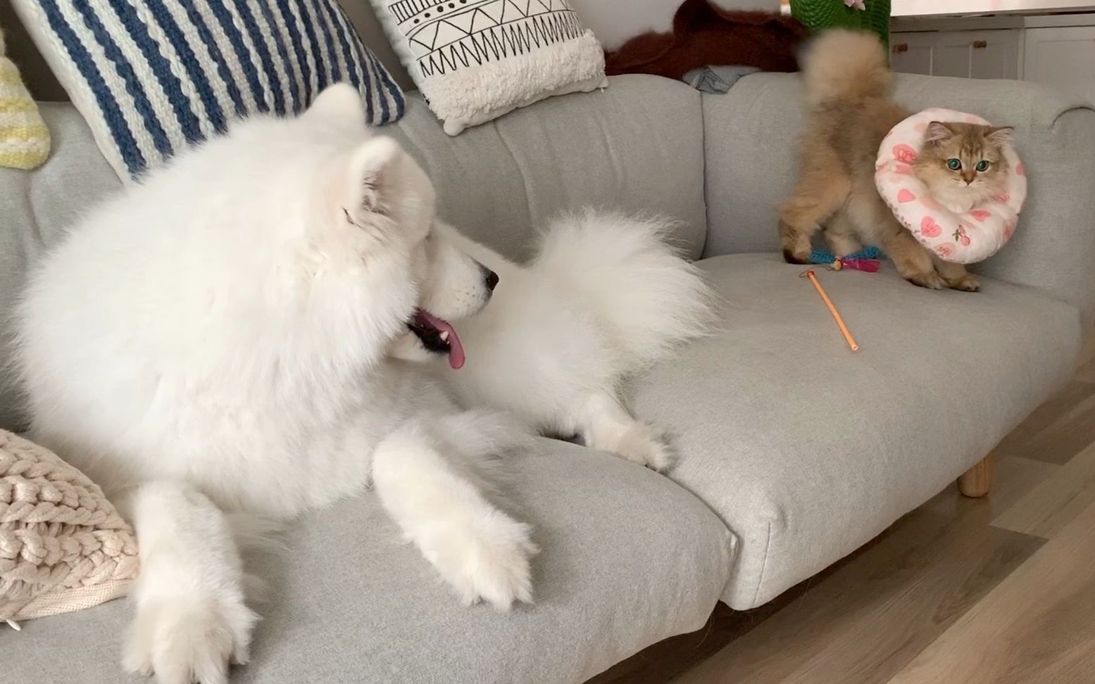 [Hewan]Hidup bahagia Golden british shorthair Mashu&Samoyed Ruantang