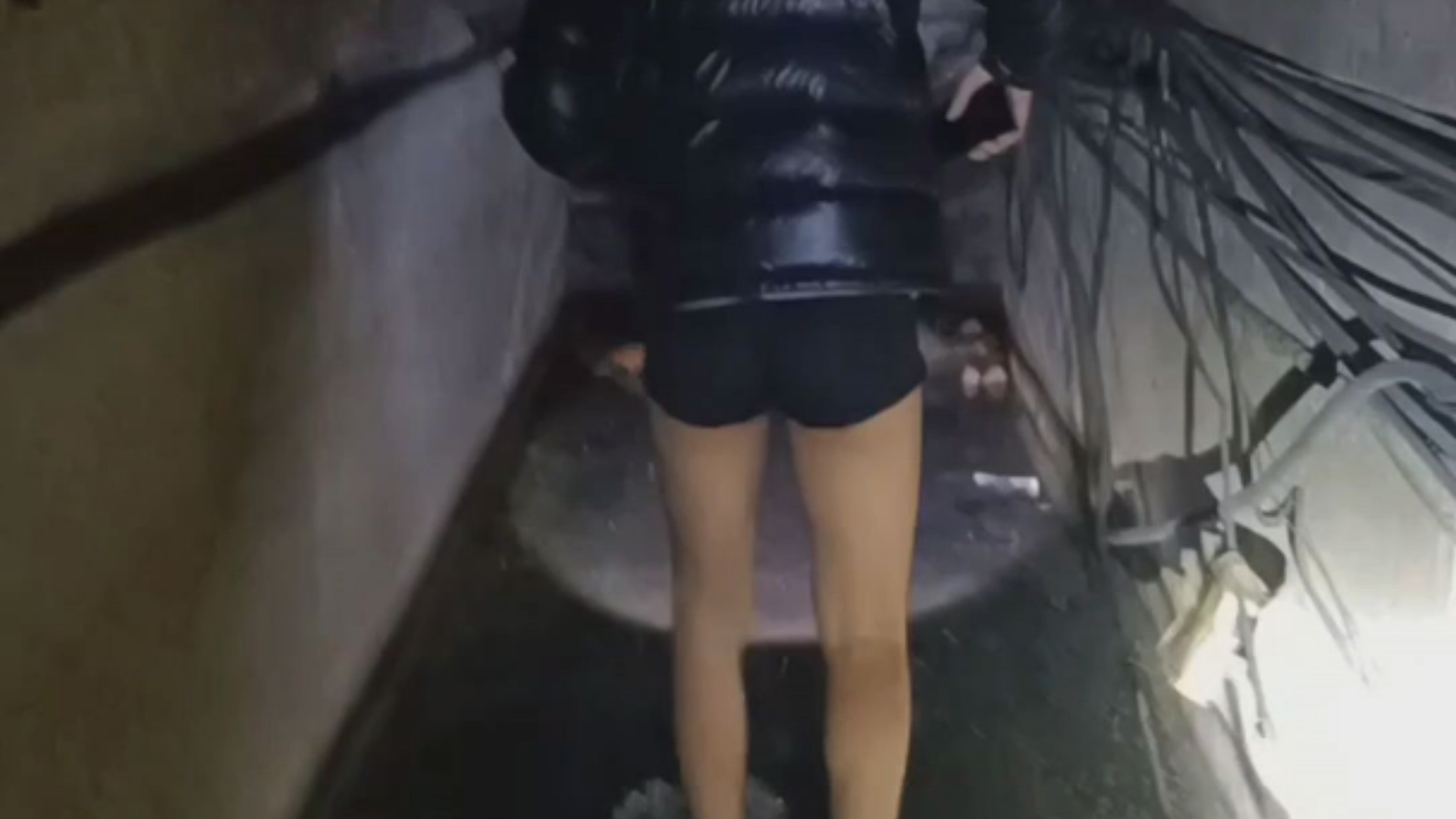 Wanita berotot berseragam militer menggunakan pahanya untuk merobek stokingnya~
