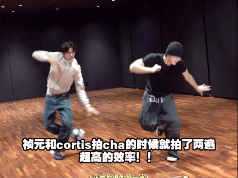Tarian acak pembangunan tim HYBE dengan teks bahasa Mandarin, semua anggota menarikan lagu BTS Dynam