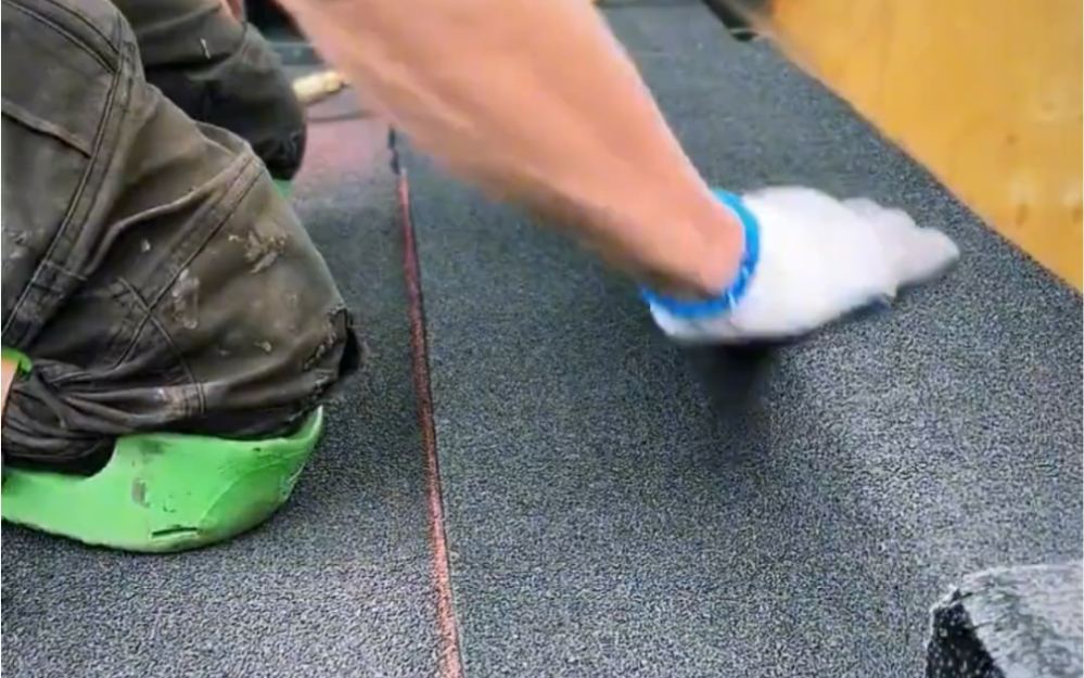 Proses pemasangan ubin lantai yang menyerupai lantai kayu
