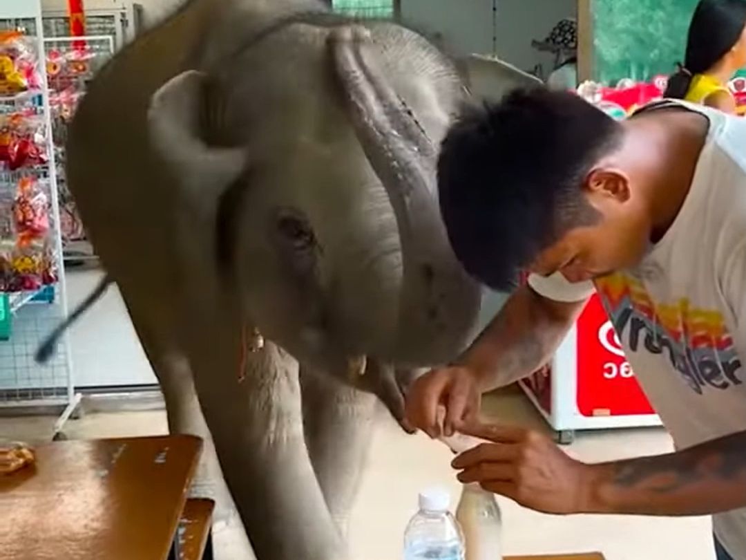 Adik manis Feiyun memegang gajah kecil yang diberikan Jin Hu sebagai kompensasi