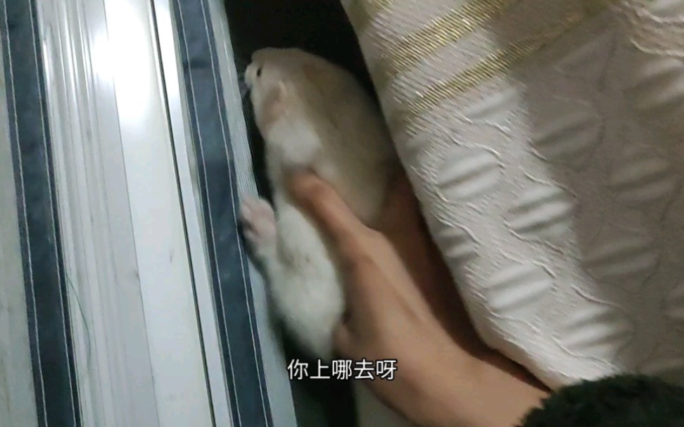 Gunakan strip kucing untuk mengajari anak kucing yang lumpuh menaiki tangga, lehernya terentang dan