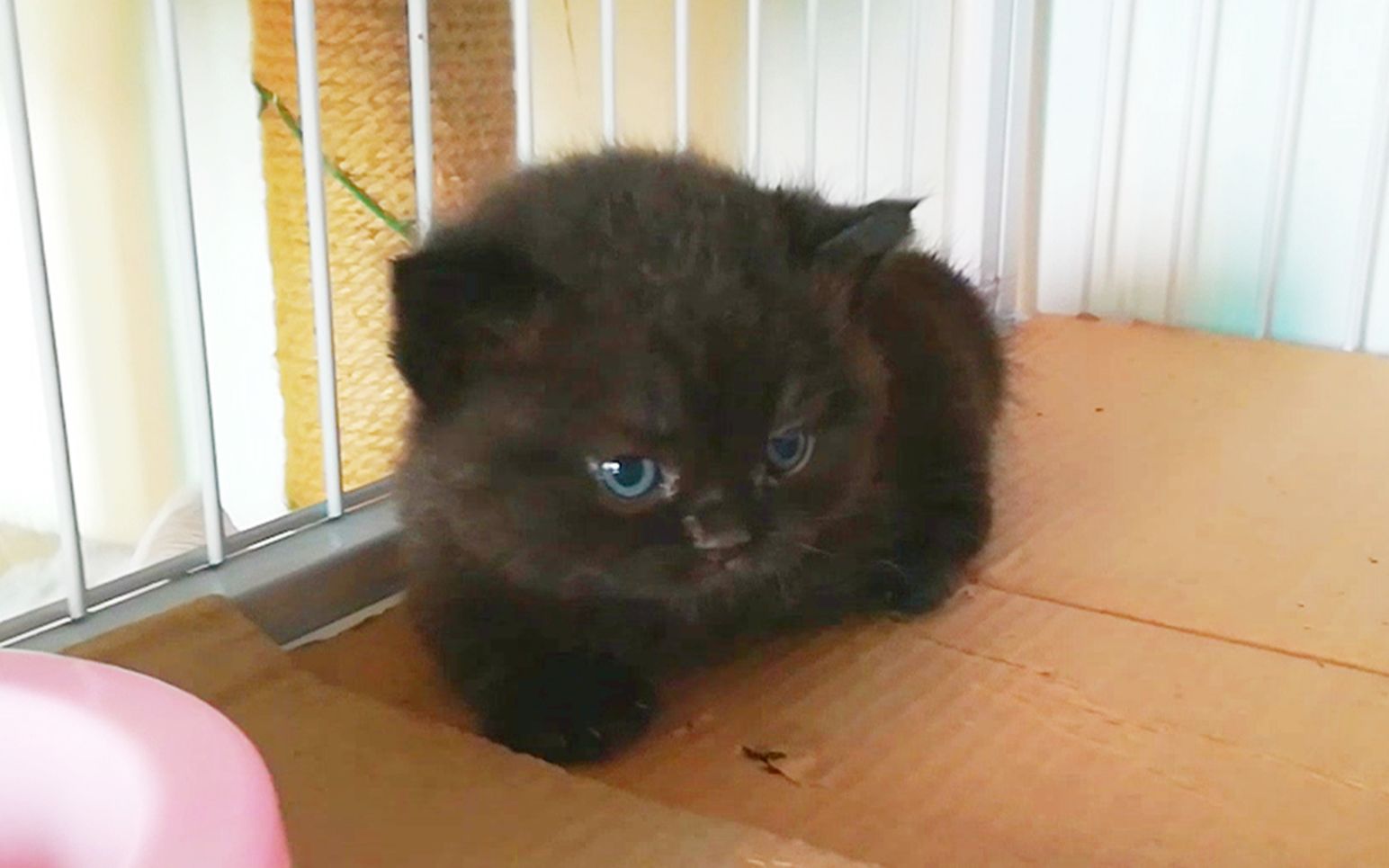 Saat kucing kecil tiba-tiba menyadari satu ekor berputar dengan cepat.