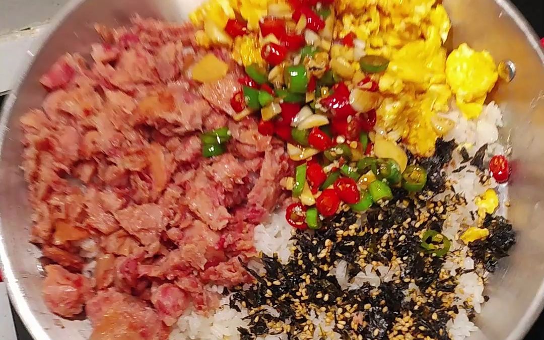 Xinqi babi goreng pedas, daging makan siang, telur gulung, roti daging sapi, pangsit goreng- [Boki]