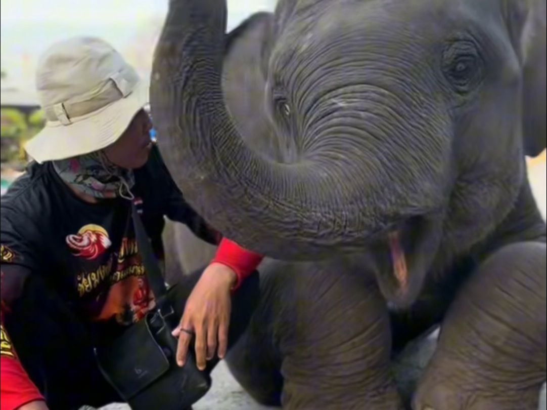 Adik manis Feiyun memegang gajah kecil yang diberikan Jin Hu sebagai kompensasi