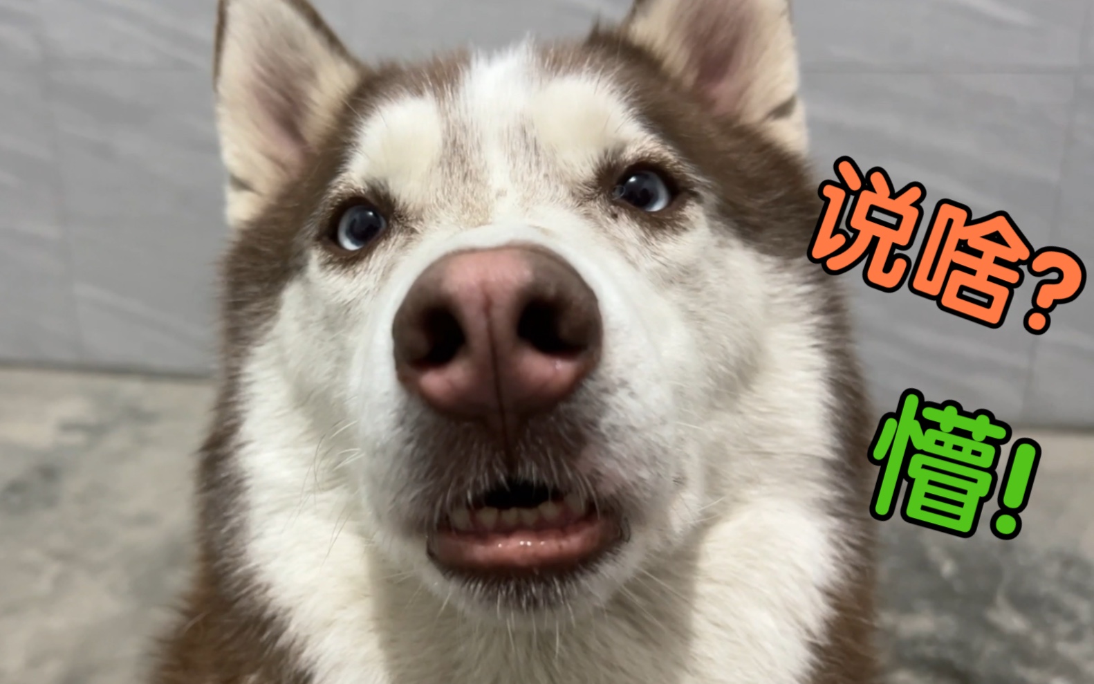 Memakai kostum dinosaurus mengagetkan Husky, bagaimana ekspresinya?