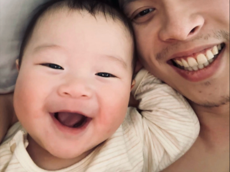 Bayi yang mengantuk tertidur pulas di pelukan ayahnya—hati langsung meleleh!