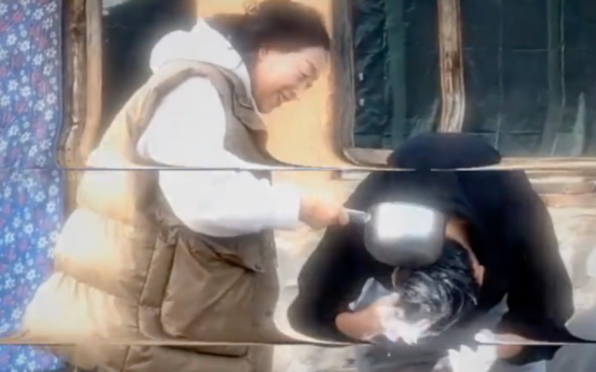 Pengantar makanan secara bersamaan dicium gila-gilaan oleh dua wanita; anak laki-laki yang bepergian
