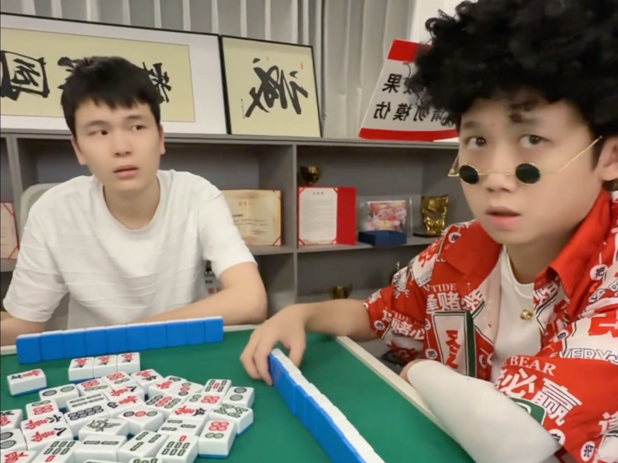 Seorang pria menyembunyikan kartu di telapak tangannya saat bermain mahjong, tetapi dia ketahuan