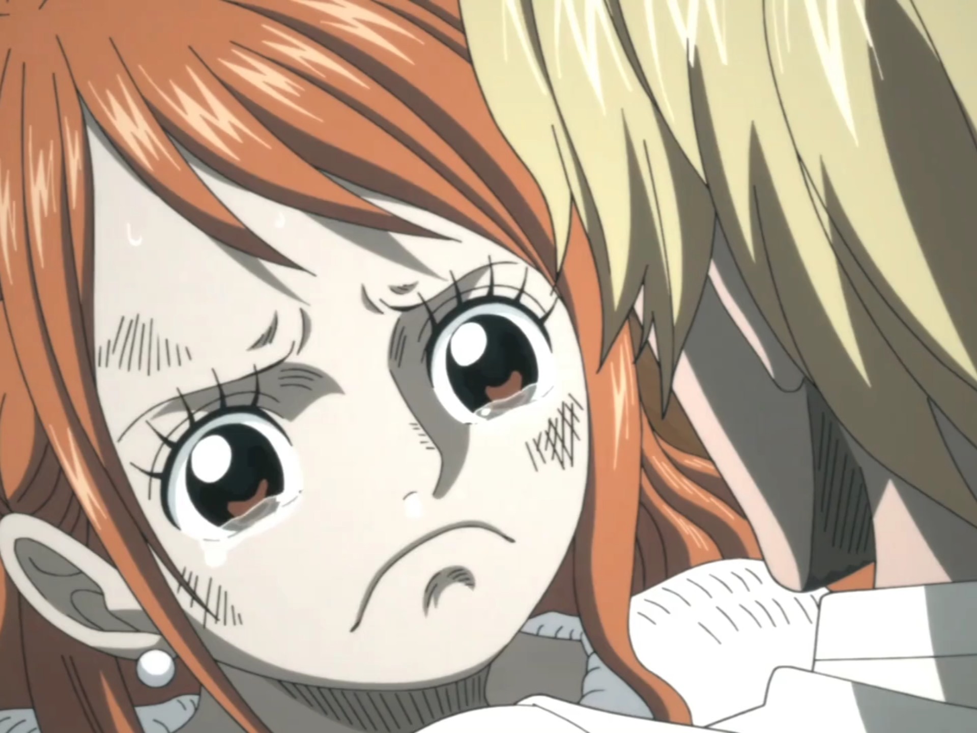 Ketika Nami tahu bahwa Luffy kehilangan saudaranya, dia begitu lembut dan perhatian