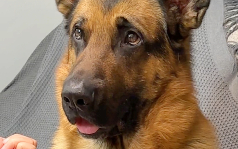 Gembala Jerman bertemu kelinci untuk pertama kalinya