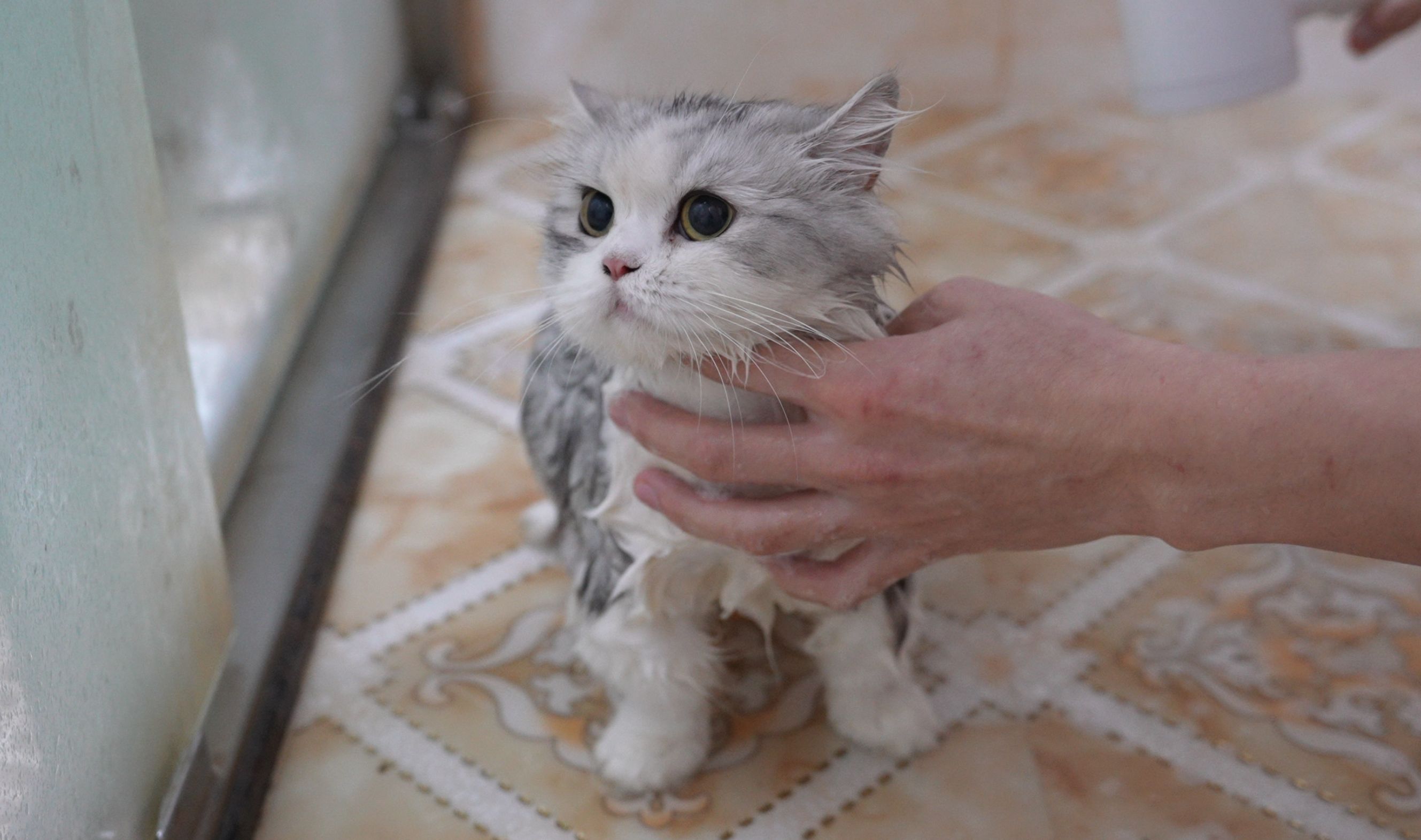 Mencuci tiga anak kucing sekaligus, tanpa disangka yang satu berperilaku lebih baik dari yang lain!