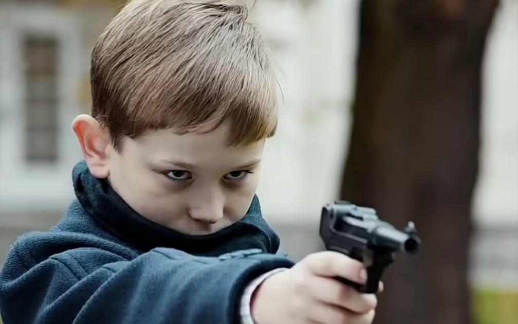 Ayah menembak mati seluruh keluarganya, lalu akhirnya bunuh diri dengan pistol. Film "Oldboy"