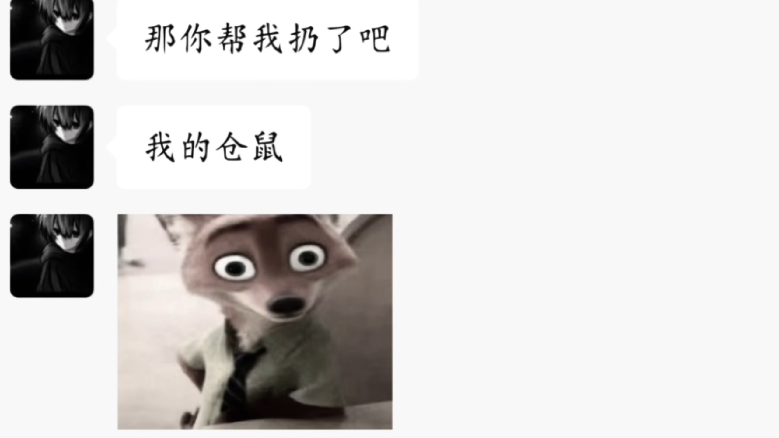 Tikus: Ada seekor kucing di belakangku dan seekor anjing di depanku, dan kau sesekali menciumku!