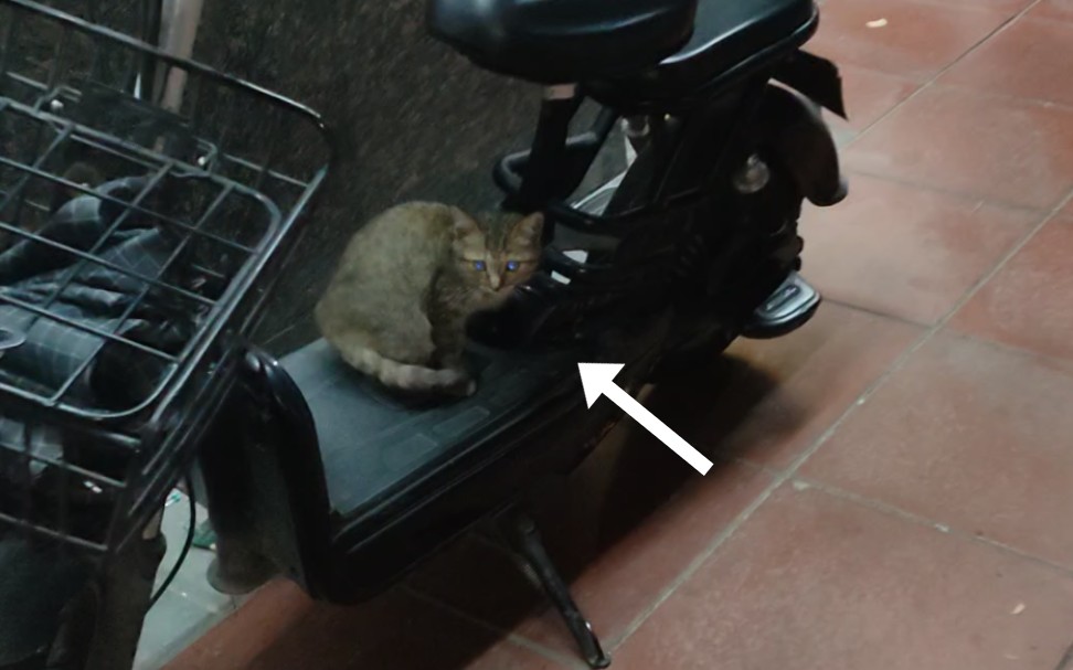 Adikku dari komunitas yang sama melihat anak kucing terlantar dalam perjalanan untuk membeli makanan