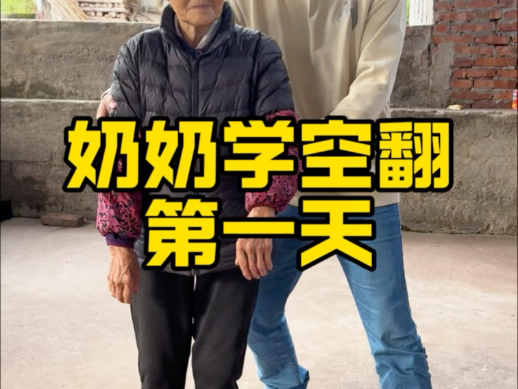 Pemuda itu menyamar sebagai seorang nenek dan melakukan salto ke belakang, membuat kakek dan nenek d