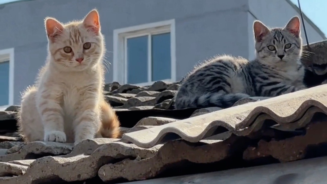 Kucing oranye kecil di pinggir jalan di Fangshan