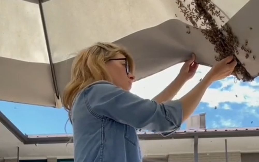 Wanita pembersih lebah profesional menyelesaikan aksi paling "gila" musim ini (tolong jangan ditiru)