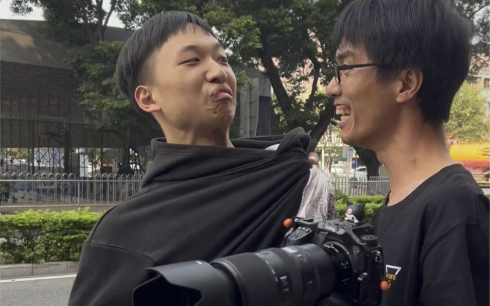 Chen Zhongxiang dan model mobil Xiao Hana difoto dengan penuh semangat di tengah hujan