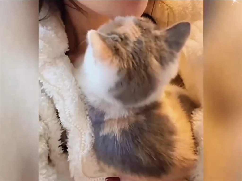 Bebek kecil menghibur anak kucing yang tidak bisa menemukan induknya