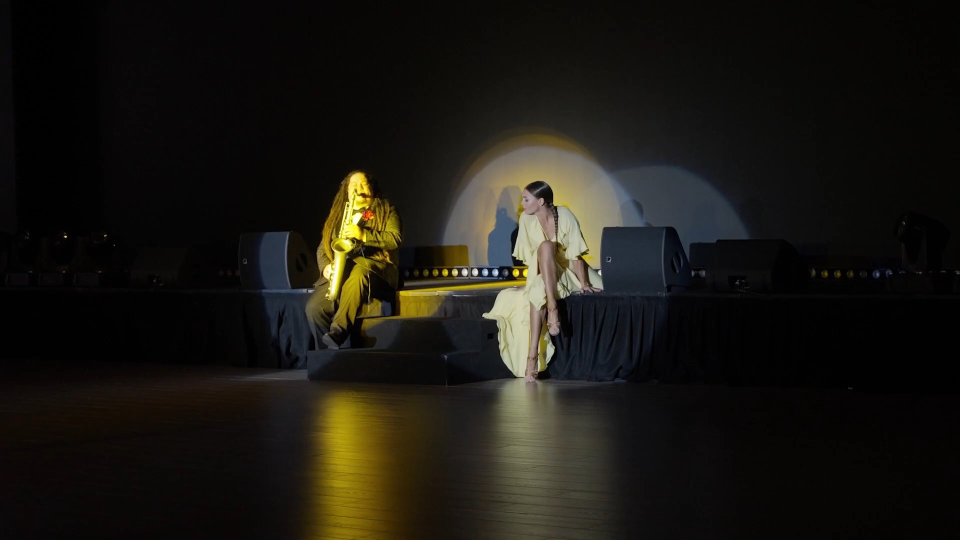 Pasangan abadi di dunia tari Latin, pertunjukan awan yang mengalir dan air yang mengalir, para penon