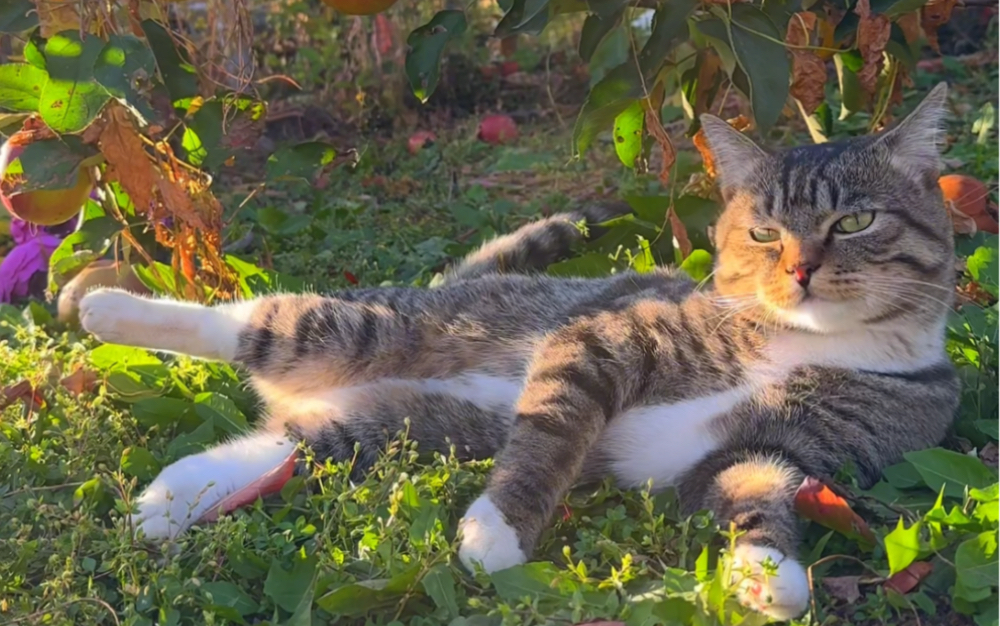 Kucing liar bermata hijau Si Mao duduk di atas kakiku dan berhenti bergerak...? ? Ambil kucing?