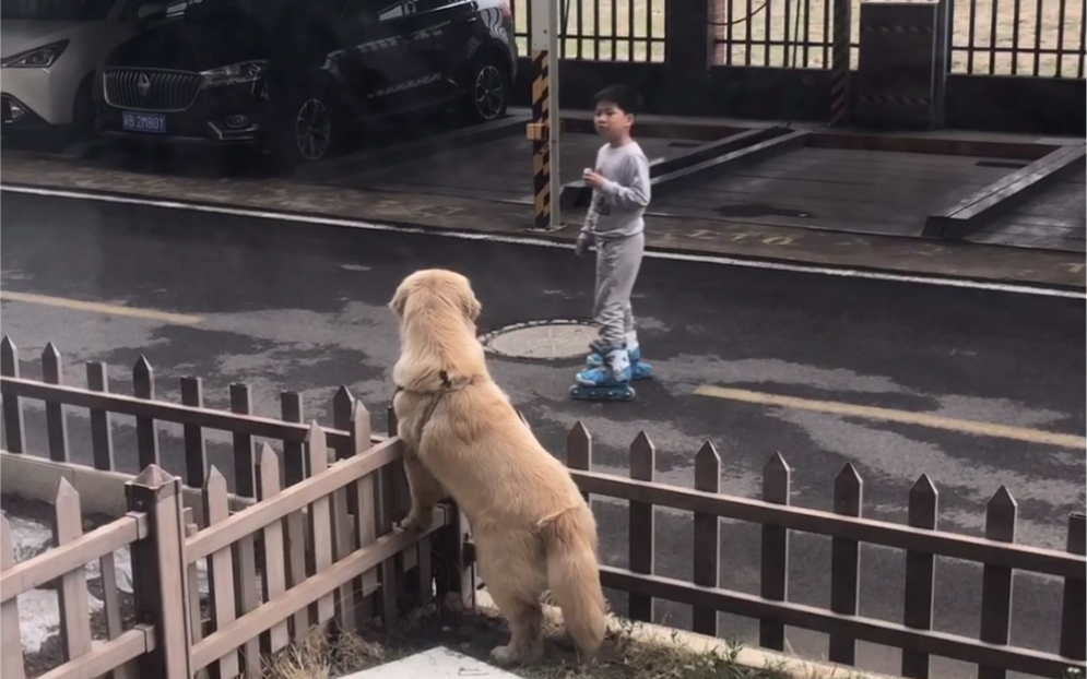 Ketika gadis kecil itu pulang dari sekolah, dia disambut oleh tiga ekor anjing penggembala Tiongkok,