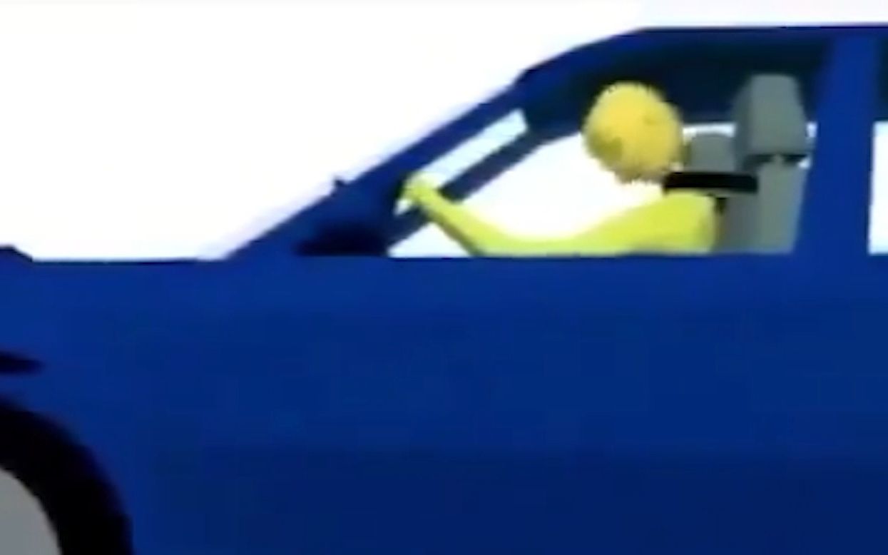 Mobil menghancurkan tumpukan korek api, dan suara ledakan berlanjut