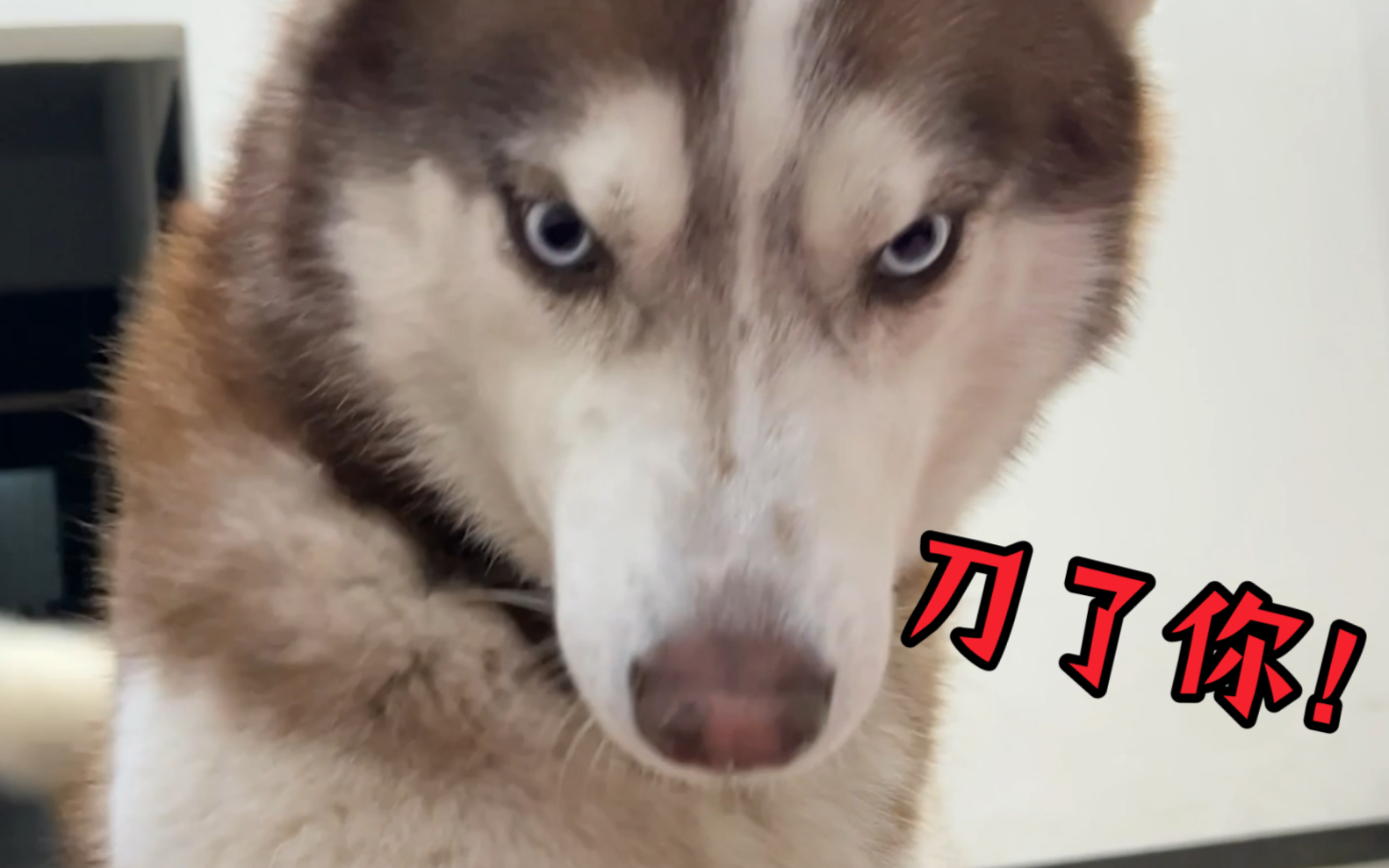 Memakai kostum dinosaurus mengagetkan Husky, bagaimana ekspresinya?