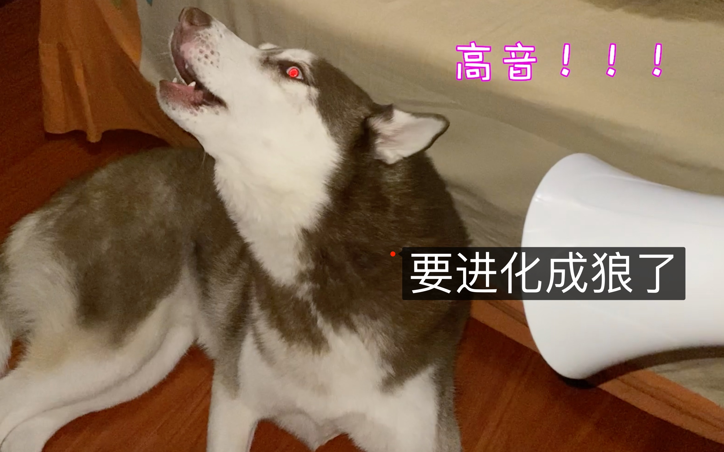 Memakai kostum dinosaurus mengagetkan Husky, bagaimana ekspresinya?