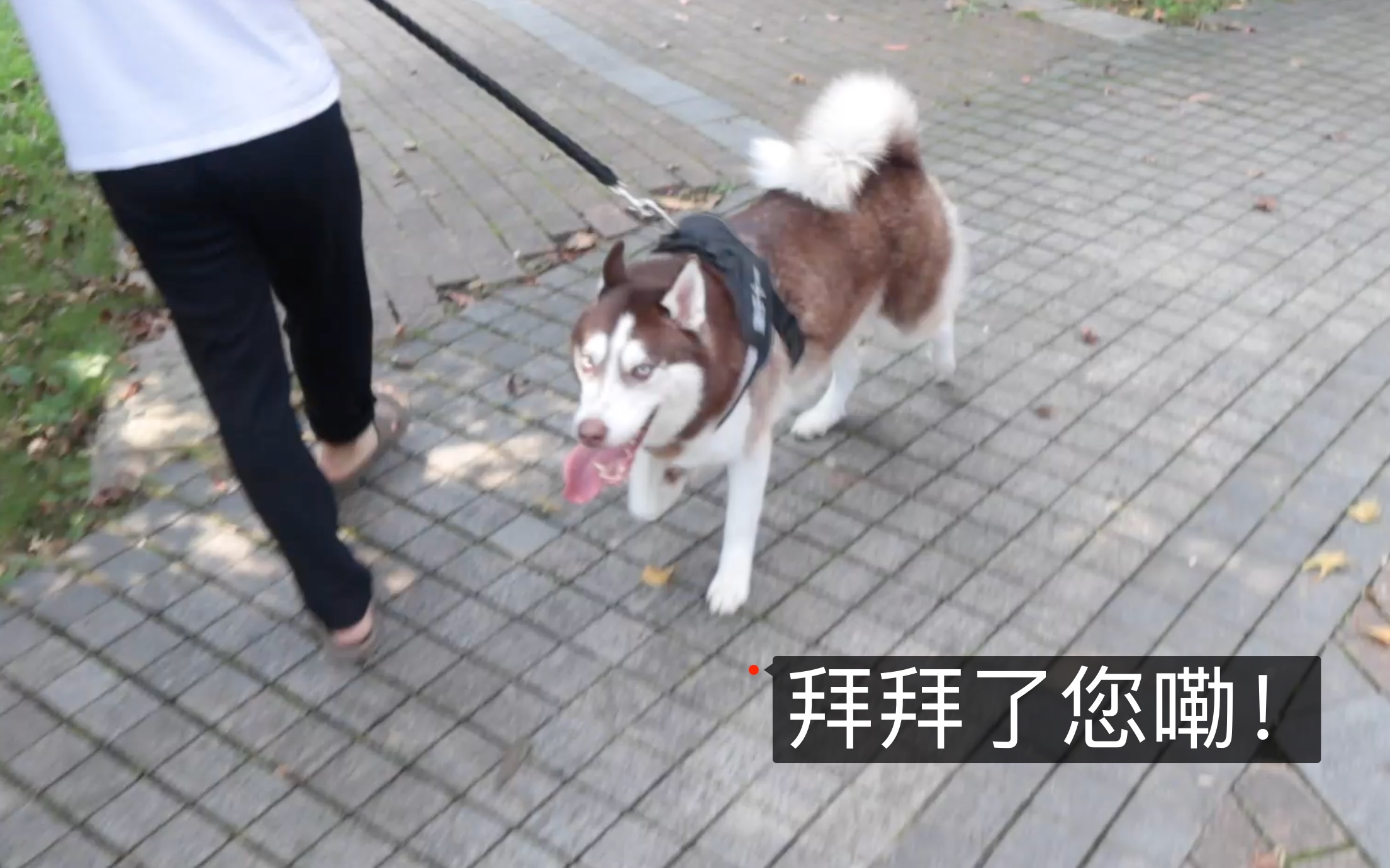 Memakai kostum dinosaurus mengagetkan Husky, bagaimana ekspresinya?